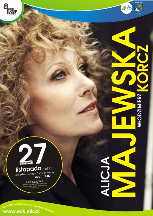 27.11  Koncert Alicji Majewskiej i Włodzimierza Korcza już w najbliższy czwartek w Ełckim Centrum Kultury. Alicja Majewska znana  jest z takich utworów jak: „Odkryjemy miłość nieznaną” czy „Być kobietą”.