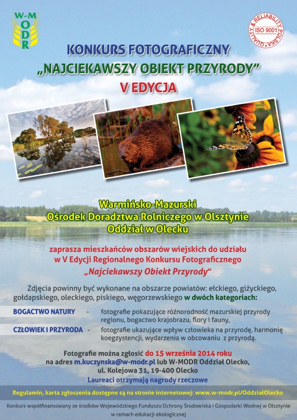 Warmińsko-Mazurski Ośrodek Doradztwa Rolniczego w Olsztynie Oddział w Olecku zaprasza mieszkańców obszarów wiejskich do udziału w V edycji Regionalnego Konkursu Fotograficznego „Najciekawszy Obiekt Przyrody”.