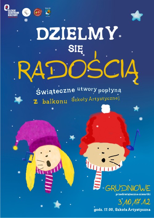3, 10, 17.12. Przed świętami każdy jest zabiegany. Warto jednak zatrzymać się na chwilę i podzielić się radością, która płynie z muzyki i śpiewu. Tym bardziej warto, że świąteczne utwory popłyną z balkonu Szkoły Artystycznej. Wykonają je uczestnicy zajęć wokalnych.
