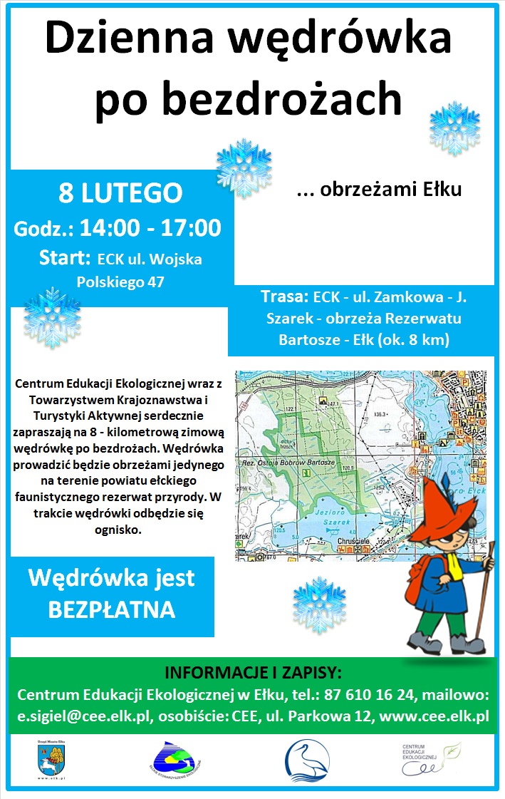 8.02. Centrum Edukacji Ekologicznej wraz z Towarzystwem Krajoznawstwa i Turystyki Aktywnej serdecznie zapraszają na 8 – kilometrową zimową wędrówkę po bezdrożach.