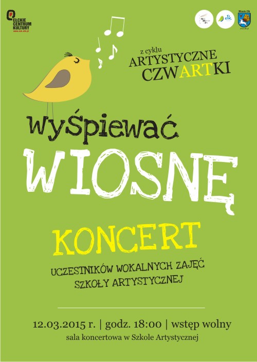 Wiosenny koncert będzie prezentacją talentów młodzieży z Warsztatów Wokalno-estradowych, warsztatów Angielski wokal oraz dzieci z grupy Zabawa z piosenką. Zapraszamy, by muzycznie poczuć już wiosnę w swoich sercach.