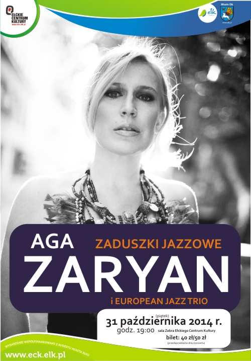 31.10. Zaduszki to czas na chwilę zadumy, refleksji i wspomnień. ECK proponuje wspólne spędzenie tego szczególnego czasu w towarzystwie wybitnej wokalistki jazzowej. Aranżacje Agi nie są jednak przeznaczone tylko dla miłośników jazzu, ale dla wszystkich, którzy po prostu muzykę kochają. Koncert będzie zbiorem najlepszych utworów z całego dorobku Zaryan.